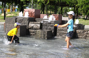 地下水を利用した噴水やせせらぎのある公園が たくさんあります。 低温できれいな湧水にしか生息しない 「ハリヨ」という魚も見る事ができます。 災害時には飲用水としても利用することができて、 いざという時も安心です。 |